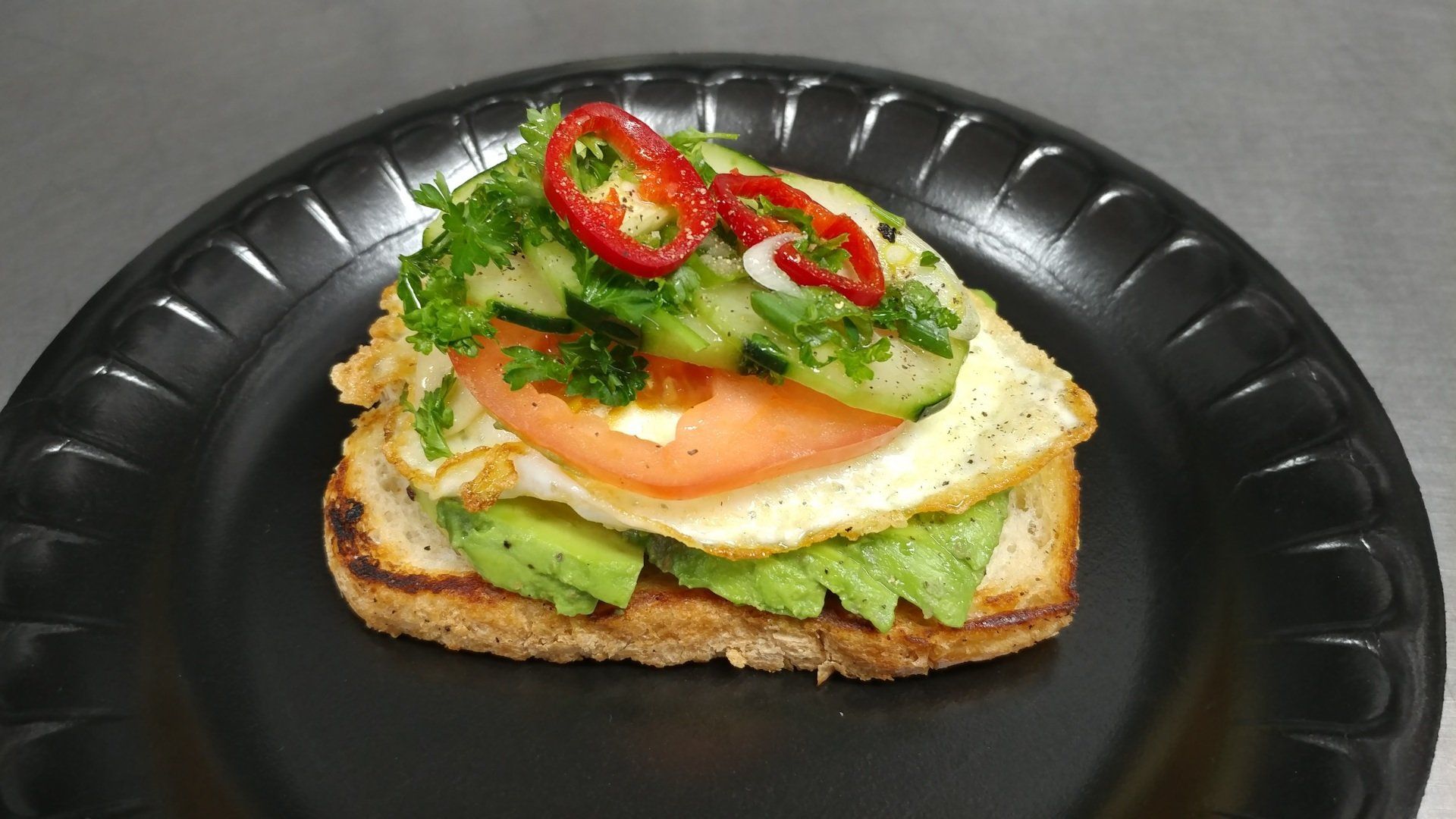 w/ roasted peppers & quail egg