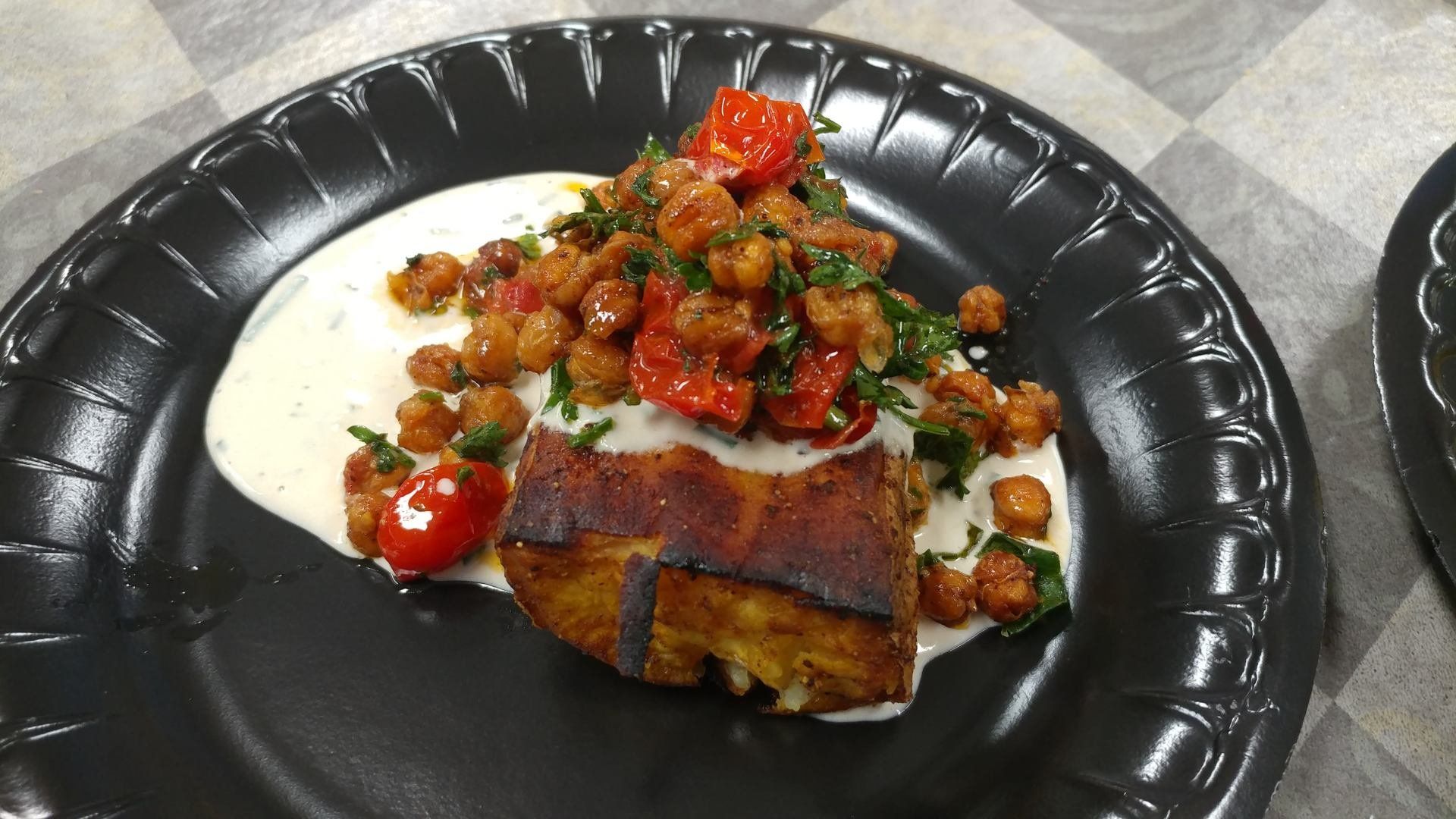 w/ tahini dressing, crispy garbanzo & roasted tomotoes